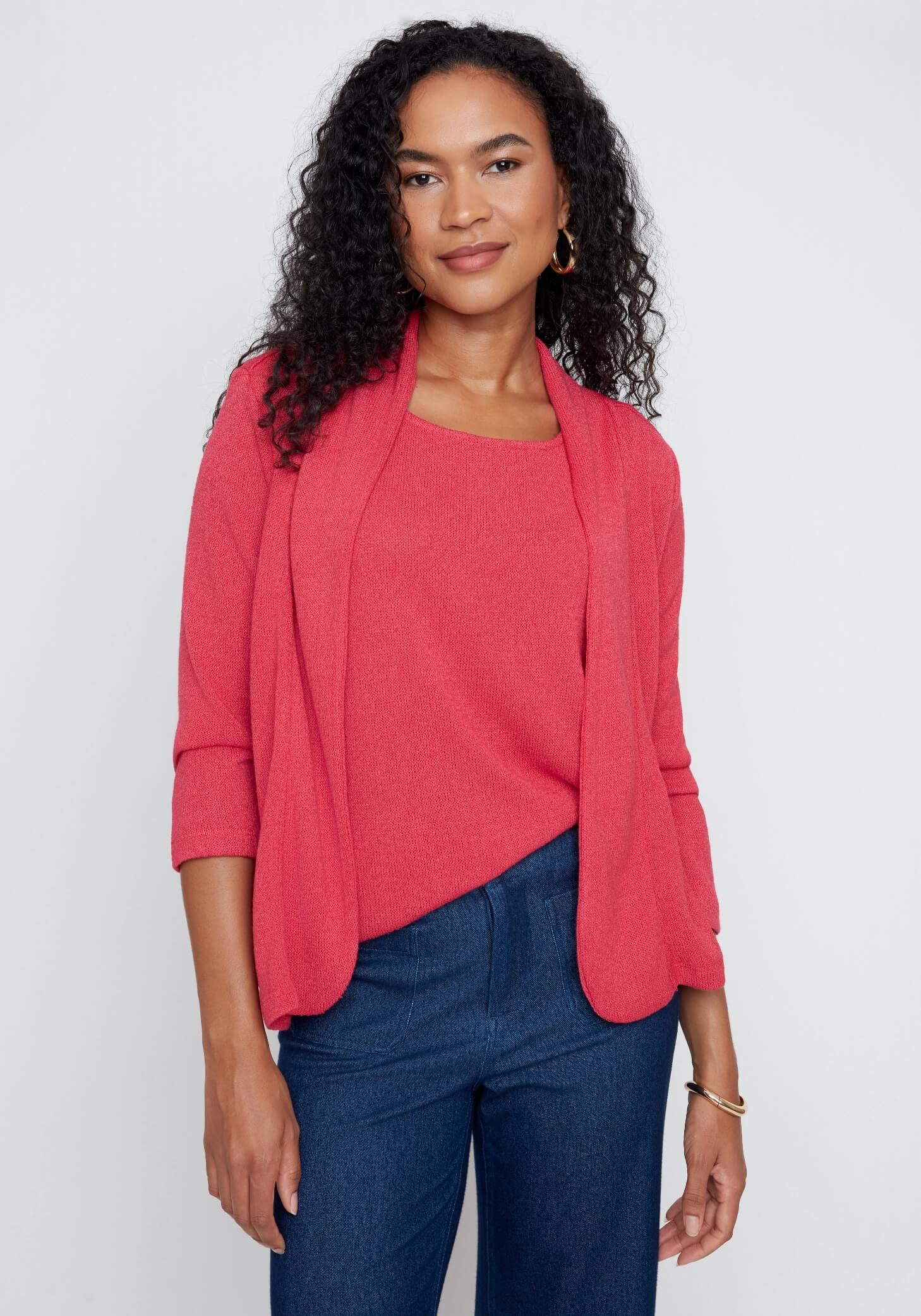 Comfort elevated, this knit sweater is designed for warmer spring days. Its textured finish adds interest while keeping the look light, easy, and naturally polished.